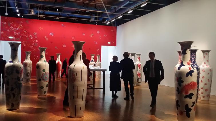 Cet artiste franco-camerounais s’est en effet prêté au jeu de la rencontre avec de nombreux chercheurs de l’Institut Pasteur et a choisi de s’intéresser en particulier aux recherches menées pour combattre deux fléaux qui touchent particulièrement le continent africain : le sida et Ebola. Sélectionné pour concourir au prestigieux prix Marcel Duchamp, Barthélémy Toguo a réalisé une installation composée de dix-huit grands vases en porcelaine ornés de représentations en lien avec ces deux virus, ainsi que d’une grande paillasse, sur laquelle figurent des impressions tridimensionnelles de cellules.