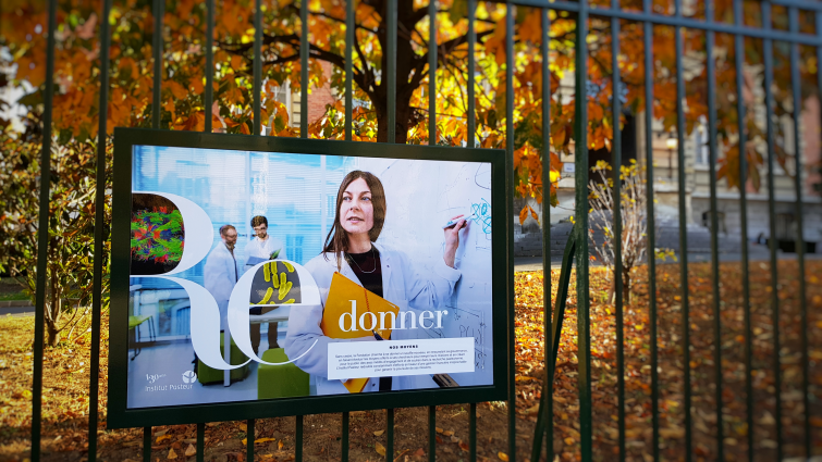 Sur un plus grand format, en harmonie avec l’environnement architectural, les nouveaux cadres affichaient plusieurs des multiples facettes de l’Institut Pasteur au travers de visages, de visuels scientifiques hauts en couleurs et de gestes de chercheurs.