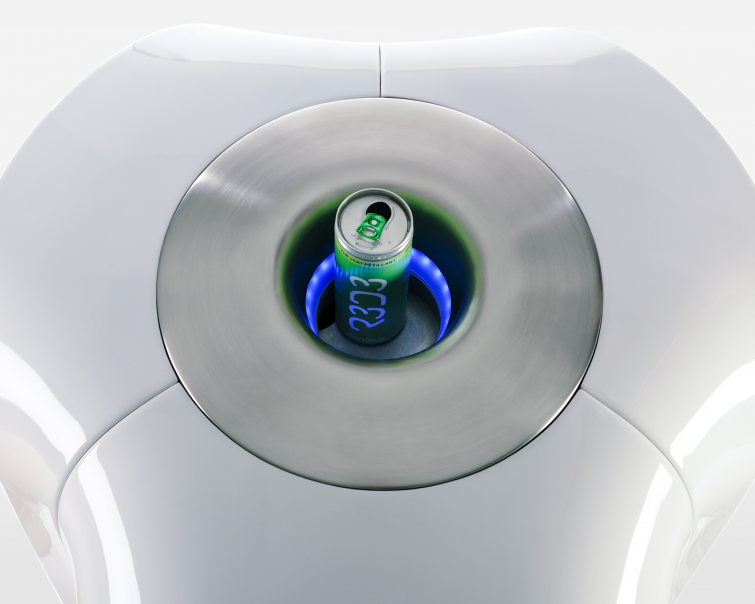 • Reconnaissance automatique : R3D3 détecte le type d’emballage boisson automatiquement. Une fois l’emballage identifié, R3D3 s’ouvre et le déchet peut être traité.