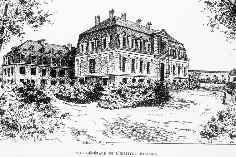 Photo : Vue générale de l'Institut Pasteur au moment de son ouverture. Gravure de 1888.