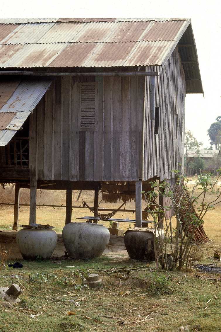 Photo : Jarres servant de gîte aux larves de moustiques du genre Aedes, vecteurs de la dengue. Environs de Phnom-Penh, Cambodge.