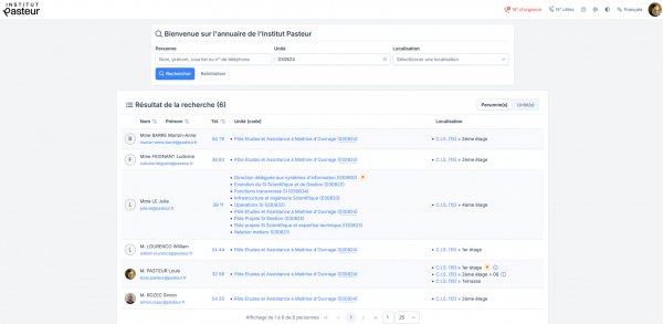 La direction des systèmes d’information a le plaisir d’annoncer la finalisation de la refonte de l’annuaire interne de l’Institut Pasteur, en ligne depuis lundi 22 septembre dernier.