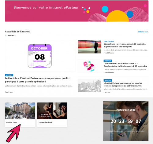 - le calendrier des événements Pasteur 2030 à venir facilement consultable