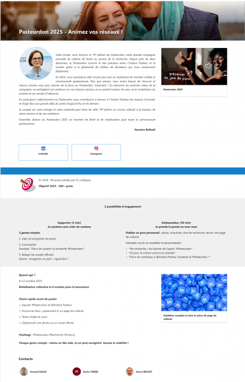 Pour toute question complémentaire, n’hésitez pas à contacter le service web et réseaux sociaux : socialmedia@pasteur.fr