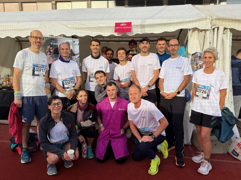 Munis de leurs t-shirts Institut Pasteur et des codes du Pasteurdon affichés sur le stand, les sportifs pasteuriens ont pris le départ de la course face à la Tour Eiffel et sous les encouragements d’une journée lumineuse. Tout au long du parcours, Pasteuriens et Pasteuriennes de tous niveaux se sont véritablement dépassés et ont, toutes et tous, tenu la distance pour franchir la ligne d’arrivée !